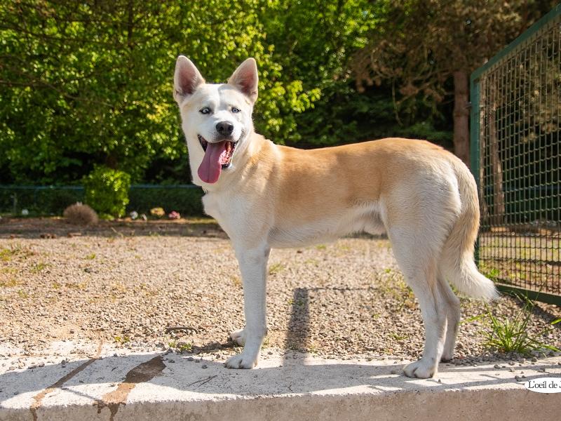 - Mon caractère : Blue est un magnifique jeune croisé Husky plein de vie et d'enthousiasme. Avec son caractère pétillant, il saura égayer vos journées grâce à son esprit joueur. Bien qu’il ait déjà une petite base d’éducation, Blue aura besoin d’une famille prête à continuer son apprentissage avec patience et bienveillance. Cette étape est essentielle pour son bien-être et pour qu’il puisse s’épanouir pleinement. Attention, Blue est aussi un athlète hors pair ! Il peut sauter très haut, ce qui signifie qu’un terrain bien clôturé sera indispensable pour sa sécurité. Si vous cherchez un compagnon loyal, dynamique et aimant, Blue est le chien qu’il vous faut. Offrez-lui une maison remplie d’amour et il vous le rendra au centuple !