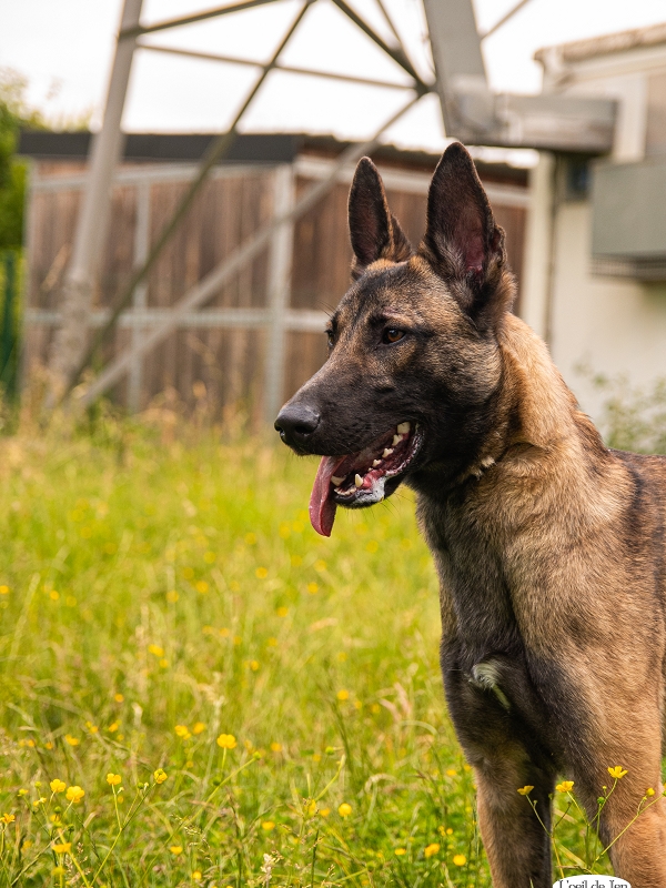 - Mon caractère : Tommy - Jeune Malinois plein d’énergie et de potentiel Tommy est un jeune Malinois ambitieux, joueur et très dynamique. Fidèle à son tempérament de berger, il est intelligent, curieux, et plein de ressources. Il a aussi un instinct protecteur prononcé : lorsqu’il est en laisse, il a tendance à vouloir défendre la personne qui l’accompagne. Une éducation cohérente et bienveillante sera donc nécessaire pour canaliser son énergie et lui apprendre à se détendre dans ces situations. En promenade, Tommy montre déjà de belles aptitudes : il n’est pas réactif aux voitures ni aux vélos, ce qui facilite grandement les balades en extérieur. Pour son bien-être, nous privilégions un foyer sans enfants, car Tommy semble ne pas être à l’aise avec eux. Il a besoin d’adultes calmes, investis, prêts à lui offrir structure, stimulation, et affection. Avec du temps, de la patience et une bonne dose d'activité, Tommy a tout pour devenir un merveilleux compagnon de vie.