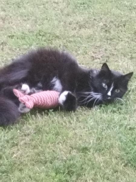 - Signe particulier : Noire long poils avec le nez, le cou et les pattes blanches.