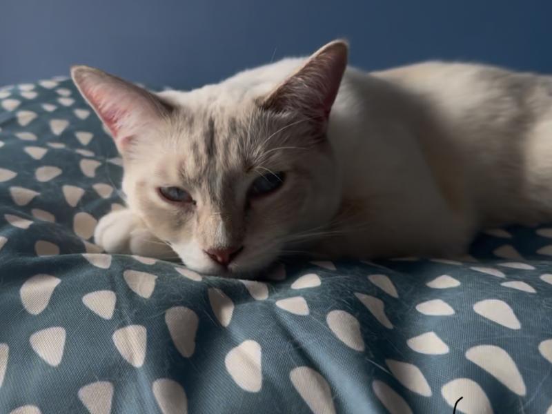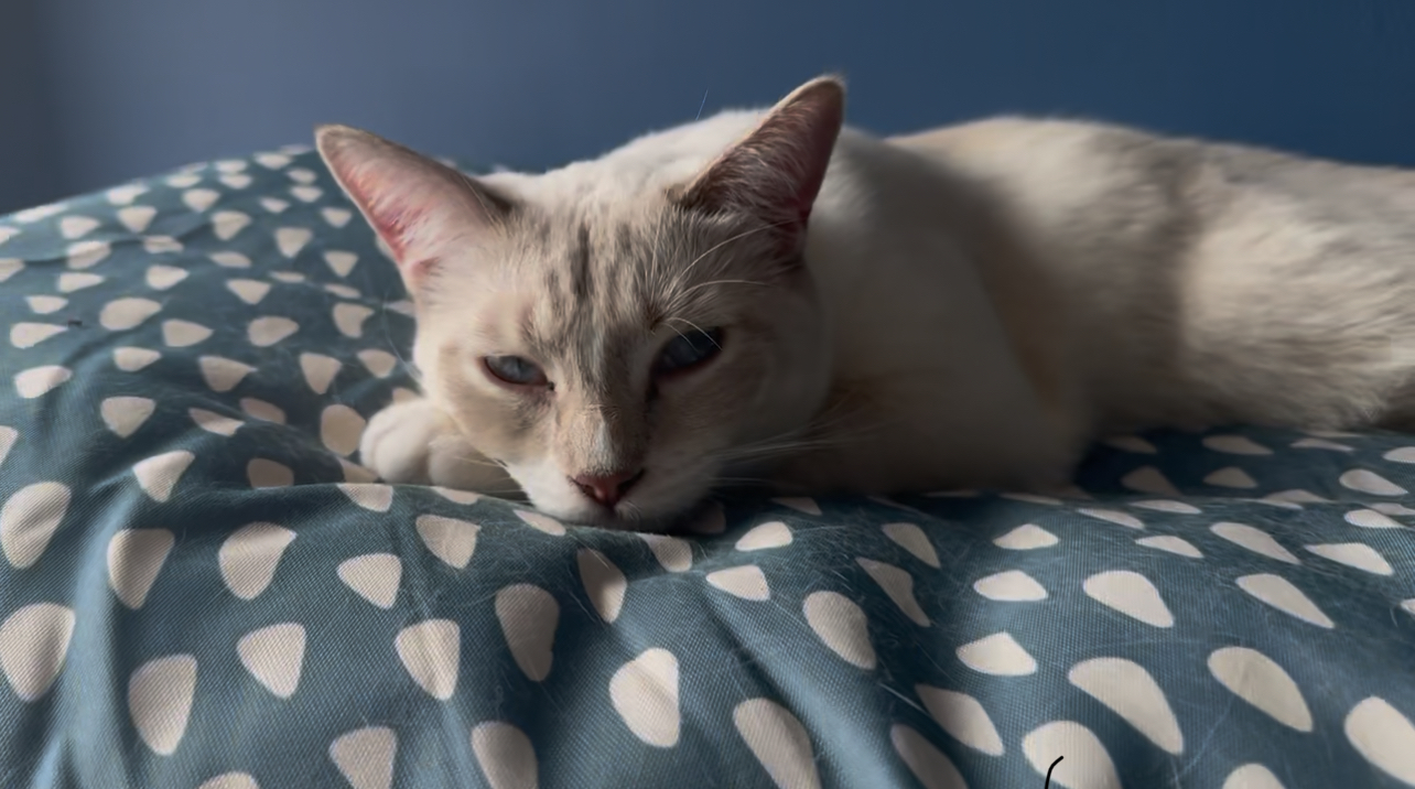 - Commentaire : Il est blanc et crême et a des yeux bleus