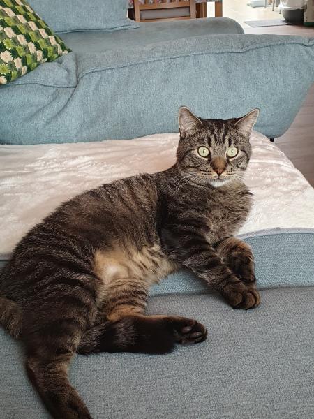 - Commentaire : El Luchador (ou Lucha ou Lulu) est un chat très gentil et joueur, mais un peu craintif. J'ai fait l'erreur de le laisser sortir le 19/10/2025 au soir et il n'est pas rentré depuis lors. Il est gris tigré avec une belle raie noir sur le dos et un marquage en forme d'eye-liner autour des yeux. Son poil est court mais bien fourni. J'habite dans l'ilôt formé par les rues des Grogères, Auguste Portier et du Foyer.