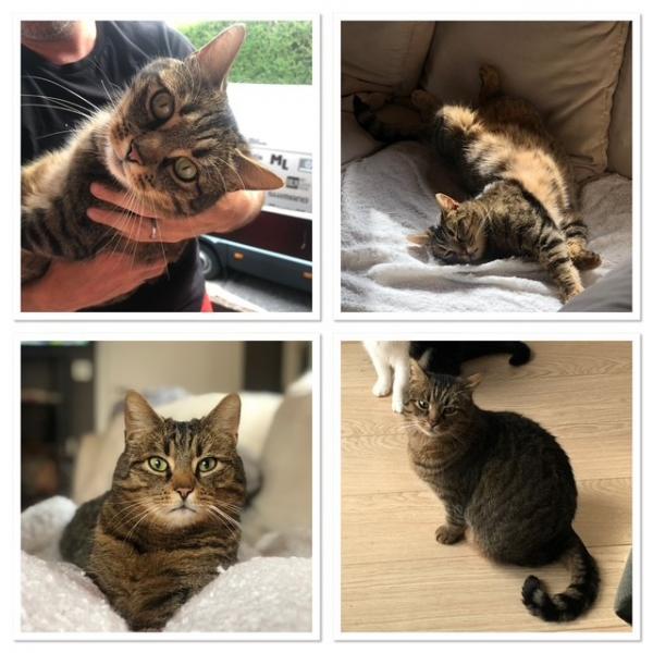 - Commentaire : Chat gris tigré avec le ventre roux et tache bengal