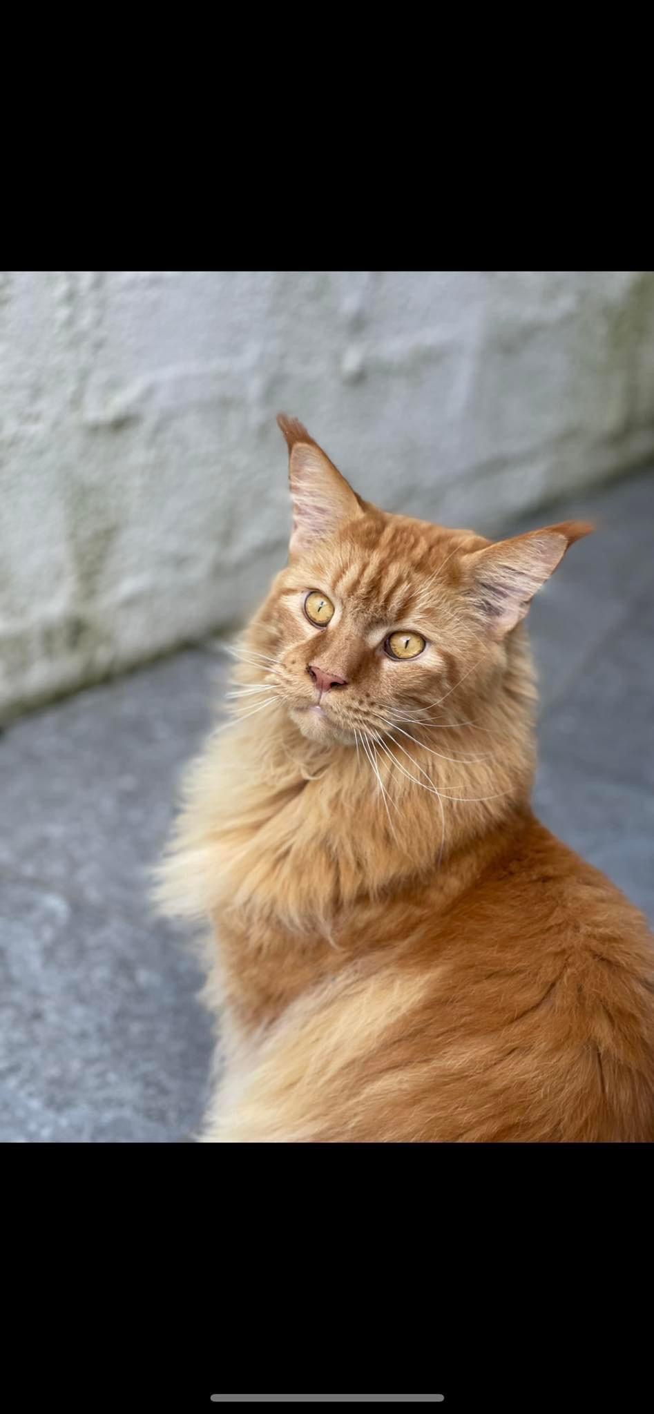- Commentaire : Aurèle est un Maine coon adulte de 4 ans. Il est majoritairement ROUX et crème en sous poils.