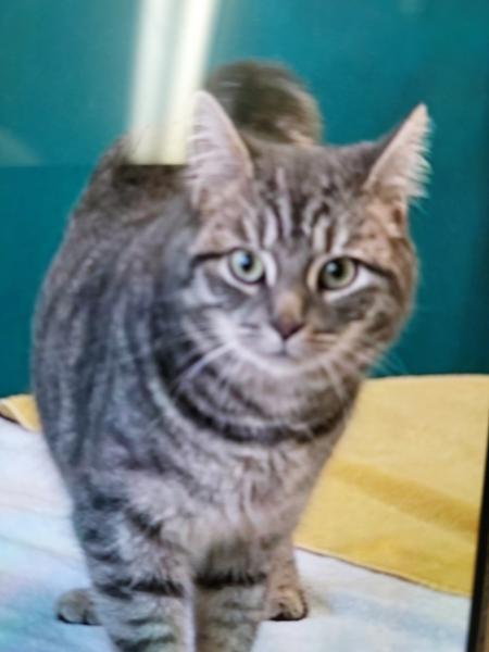 - Signe particulier : Chat tigré dans les tons gris opéré