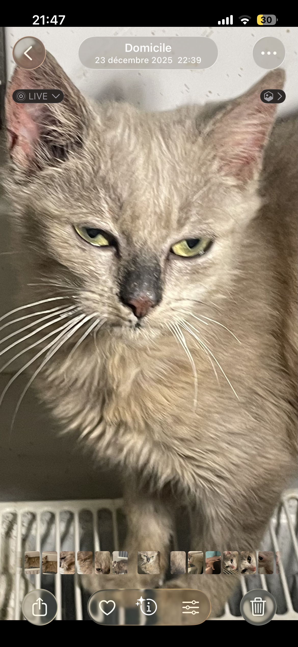 - Commentaire : Petit chat très doux et affectueux, limite trop sociable, joueur, gourmand, la semaine où il à disparu j’étais très absente à cause du décès de mon frère et il s’est éclipsé pour sortir, si ça lui arrive il revient tres souvent plusieurs fois , et quand je revenais c’était le premier à m’attendre , ce n’est pas dans ses habitudes, il ne quitte jamais la rue où j’habite où mon jardin et ruelle derrière… il est si petit et mignon avé. Si. Petit ventre dodu qu’on le confondrait avec un chaton beaucoup plus jeune … il nous manque beaucoup, notre petit rescapé de la rue :(