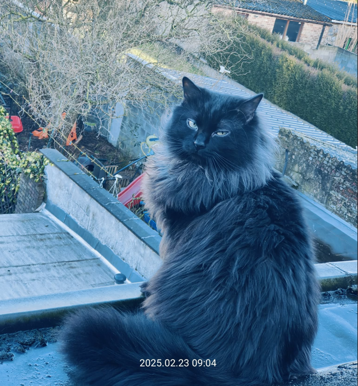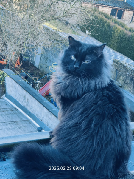 - Commentaire : il vit qu'a l'intérieur, ou sur le toit, jamais sorti sauf cette fois-ci.