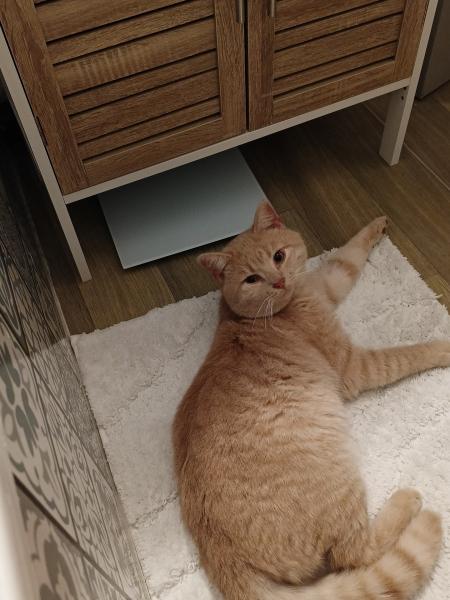 - Signe particulier : Roux clair, canine droite en haut cassée, miaule avec une voix rauque