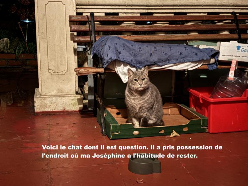 - Commentaire : Bonjour, mon chat que j'ai adopté, il y aura bientôt 4 ans à la SPA de La Louvière n'ose plus sortir de chez-moi, car il y a un chat errant qui a dû l'attaquer il y a un deux mois de cela. Elle avait une poche de pus à la gorge et c'est le vétérinaire qui a vu que c'était dû à un coup de griffe en rasant les poils. Quand elle voit ce chat, elle en a peur feule et crache. Je suppose que c'est ce chat qui l'avait attaqué. Avec l'humain, c'est un chat très sociable tres callin , il est castré. Je suis allé avec chez mon vétérinaire pour voir s'il n'a pas une puce électronique, hélas, non. Il n'appartient à personne dans la rue. Que dois-je faire avec ce chat ? Je vous ai déjà envoyé deux mails à info@spa-charleroi.be le 29/12/2025. P.S C'est mon vétérinaire qui m'a suggéré de contacter une SPA. A la spa la louvière, il n'y a plus de place pour ce chat
