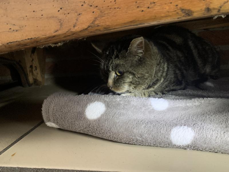 - Commentaire : Chat errant venu trouver refuge chez ma maman qui est incapable de s’en occuper.