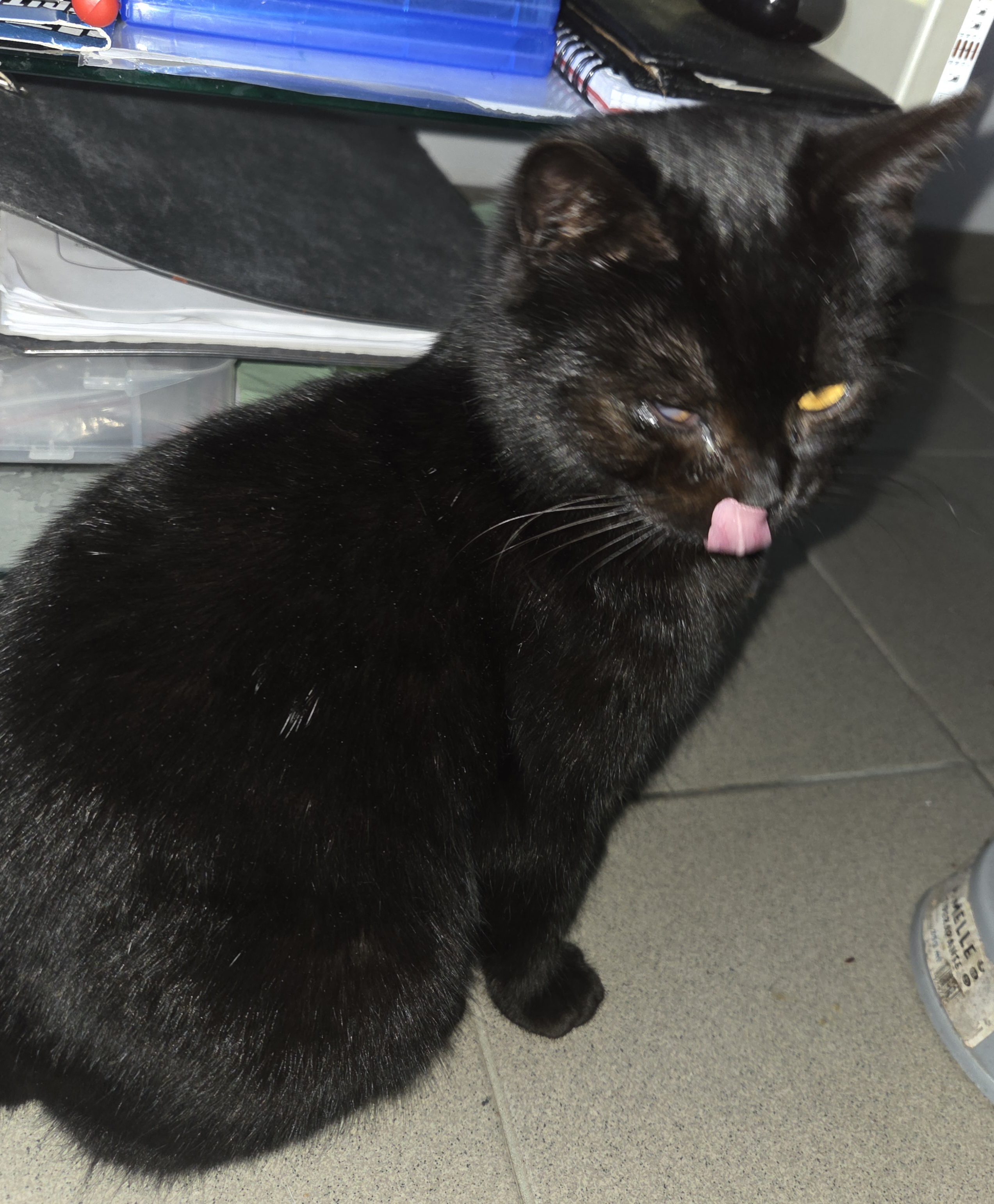 - Signe particulier : Chat mâle noir avec tache blanche sur le ventre